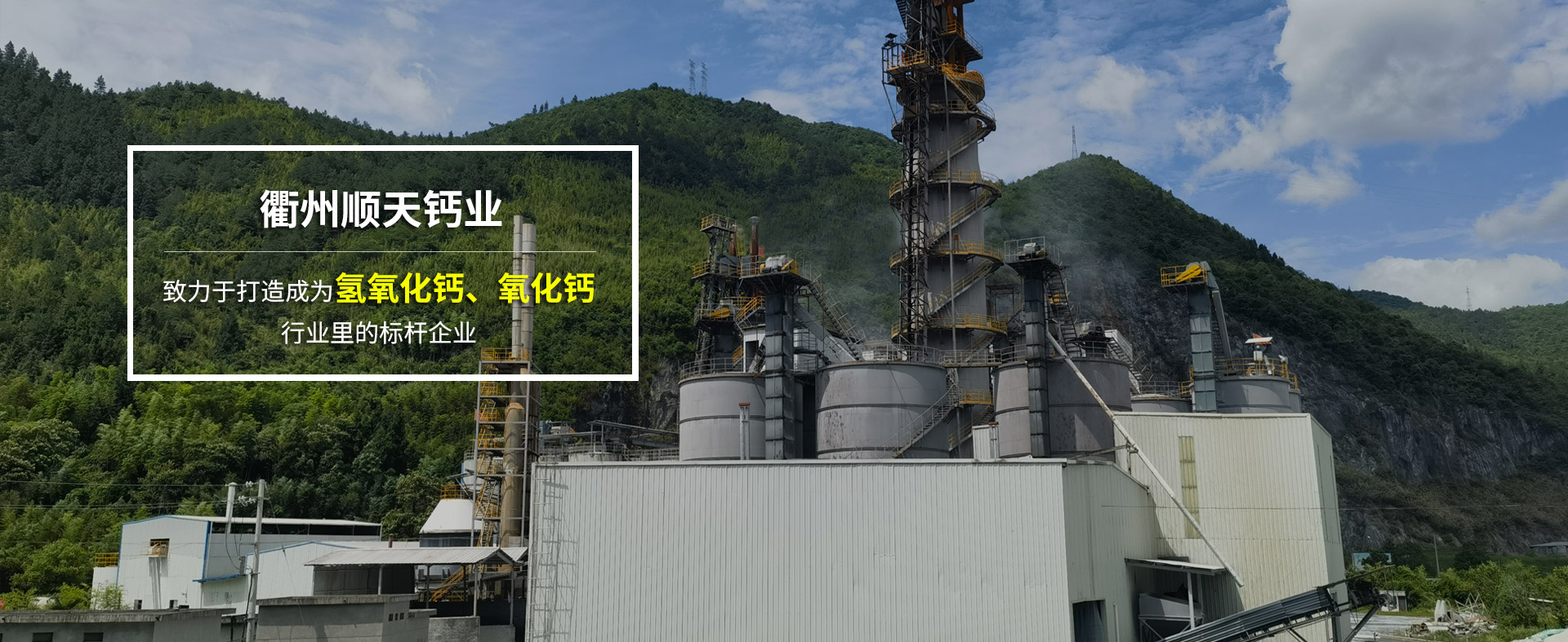 衢州順天鈣業有限公司座落于中國碳酸鈣之鄉-----浙江省衢州市衢江區上方鎮工業功能區,創建于2012年,是集專業研究開發生產銷售氫氧化鈣、環保專用鈣、治金石灰(氧化鈣)及功能鈣于一體的國家高新技術企業,衢江區規模工業企業。曾榮獲2項衢江區區長特別獎,上方鎮百萬納稅企業。安全生產標準化三級企業,是上方鈣產業整治提升,轉型升級示范企業。一直以來,企業注重與科研單位,大專院校加強協作,與浙江理工大學聯合成立精細鈣產品研發中心。